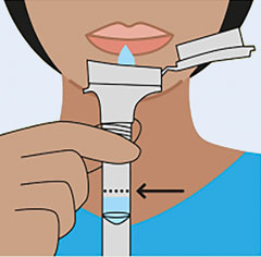 Spit into the funnel, closing your mouth around the funnel to create a seal until the amount of liquid saliva (not bubbles) reaches the fill line. -